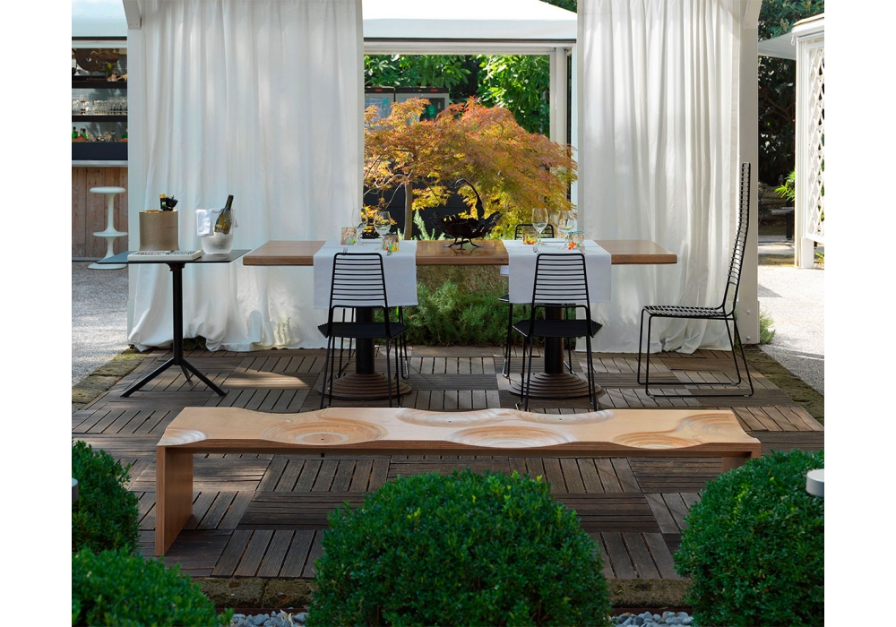 Alieno firmata da GamFratesi per Casamania & Horm è una sedia d'esterno realizzata in metallo verniciato goffrato. Disponibile in 2 finiture.