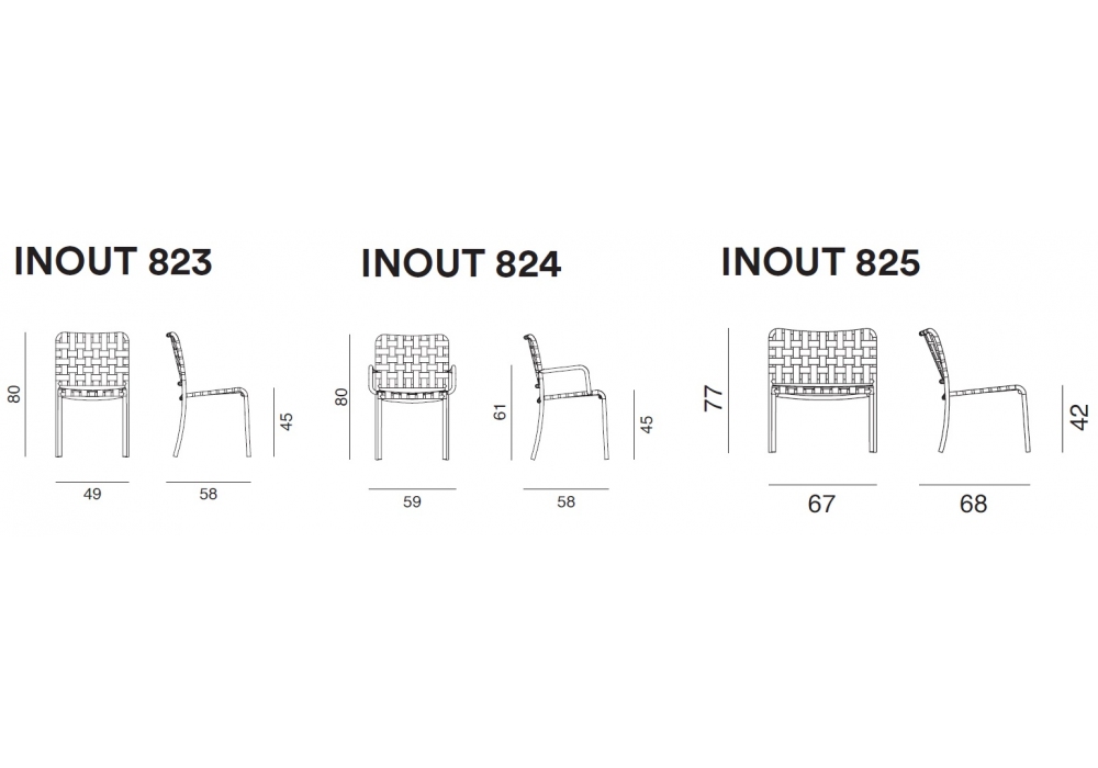 | Dimensioni | InOut 823_ 49 x 58 x H 80 cm; InOut 824_ 59 x 58 x H 80 cm; InOut 825_ 67 x 68 x H 77 cm. |