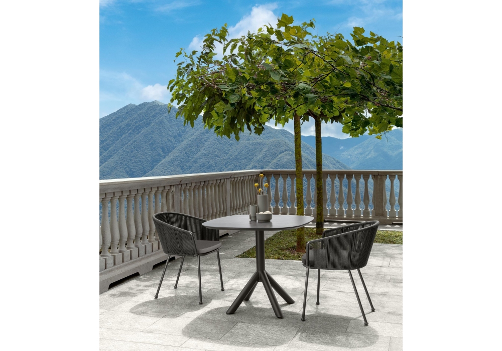 Coral firmata da Marco Acerbis per Talenti è una sedia da esterno con struttura in alluminio. Schienale e braccioli rivestiti con un intreccio di corda sintetica. I cuscini sono sfoderabili e sono rivestiti con tessuti per esterni resistenti agli agenti atmosferici.
