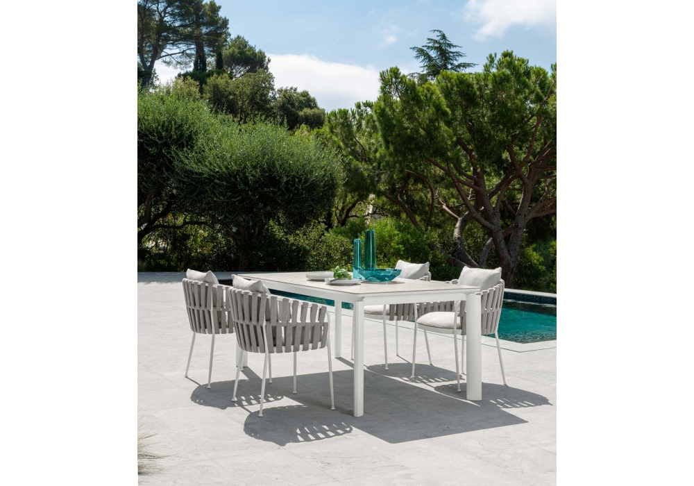 Frame firmata da Ludovica + Roberto Palomba per Talenti è una sedia per esterno. Struttura in alluminio verniciato a polvere. Struttura schienale rivestita da un intreccio di corde imbottite. I cuscini sono sfoderabili e sono rivestiti con tessuti per esterni resistenti agli agenti atmosferici.