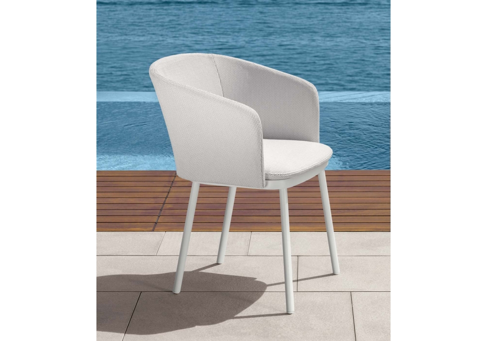 Slam firmata da Ludovica + Roberto Palomba per Talenti è una sedia da pranzo per esterno con struttura in alluminio verniciato a polvere. Schienale e cuscini sono sfoderabili e sono rivestiti con tessuti per esterni resistenti agli agenti atmosferici.