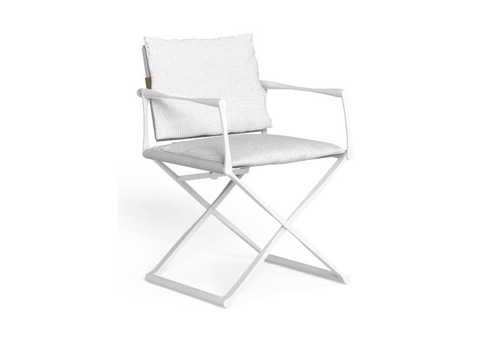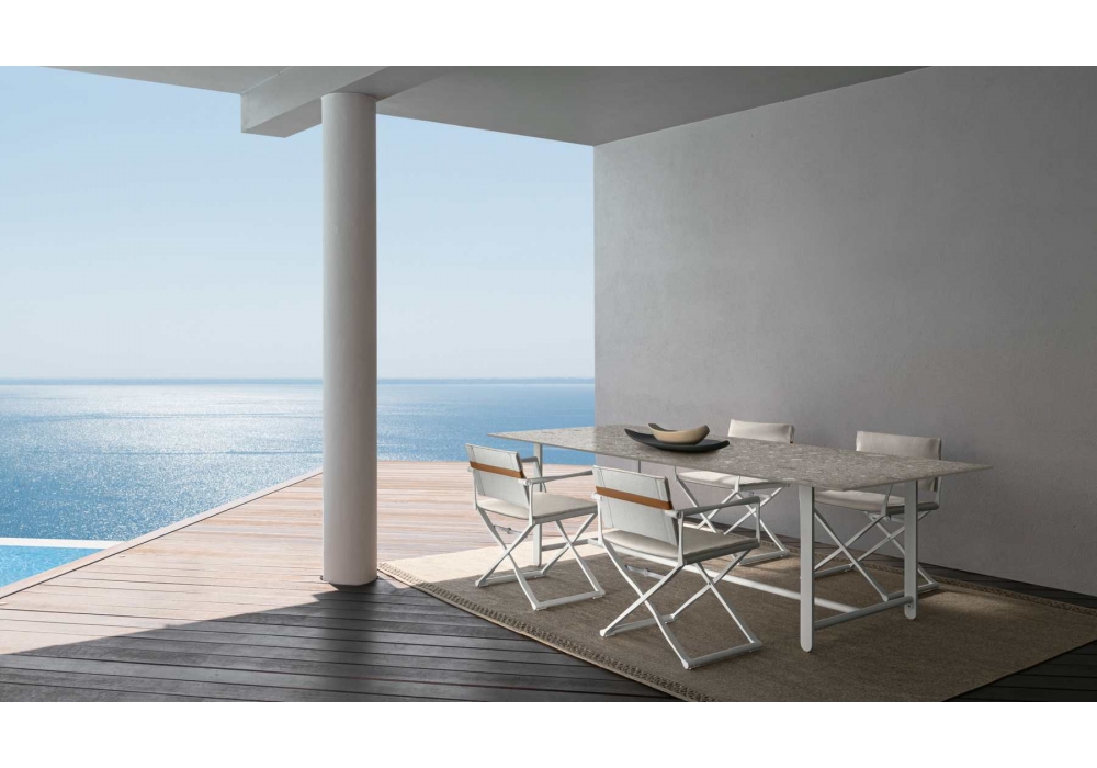 Riviera firmata da Jean Philippe Nuel per Talenti è una sedia da regista per esterno. Struttura in alluminio verniciato a polvere, dettaglio in pelle nello schienale. I cuscini sono sfoderabili e sono rivestiti con tessuti per esterni resistenti agli agenti atmosferici.