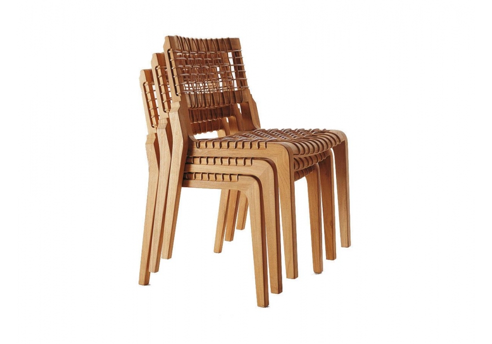 Synthesis prodotta e firmata da Unopiù è una sedia impilabile con struttura in legno teak naturale e corda intrecciata waprolace. La cuscinatura è in tessuto acrilico disponibile in differenti colorazioni.