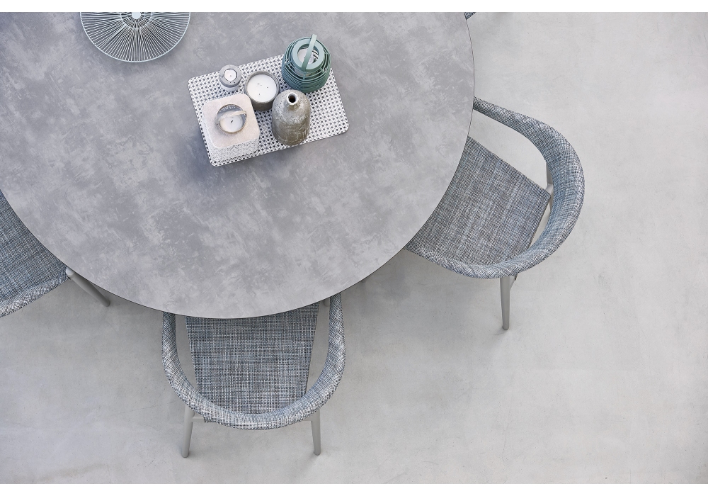 Clever firmata da R&D per Varaschin è una poltroncinacon struttura in alluminio verniciato a polveri, sedute e schienali in tessuto tecnico in PVC. Cuscino opzionale con imbottitura in gomma Dryfeel da esterno. Disponibile in differenti finiture.