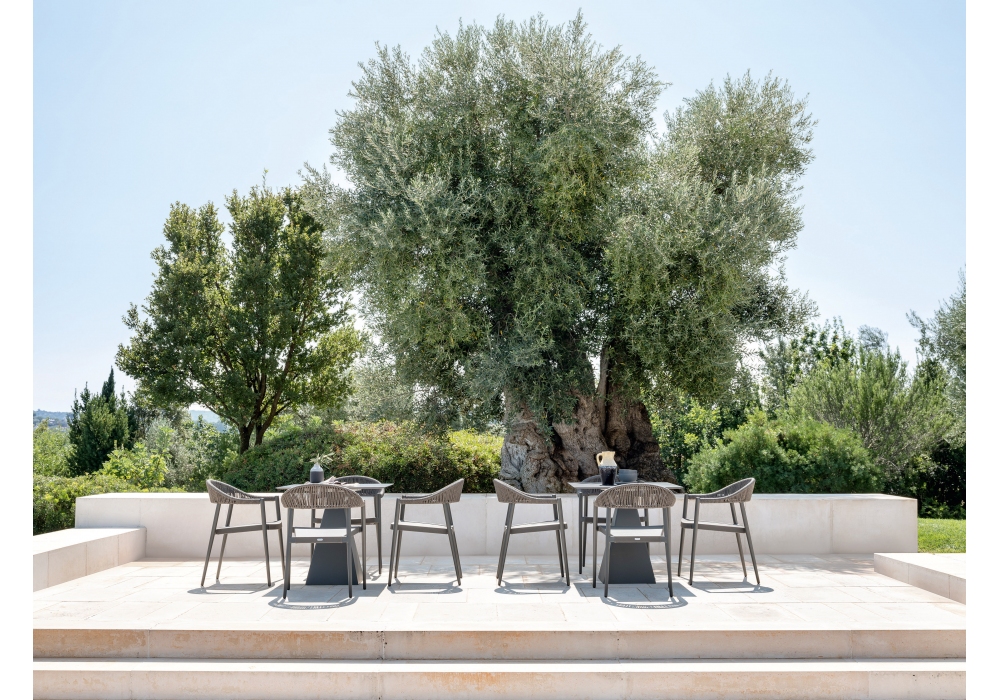 Clever firmata da R&D per Varaschin è una poltroncinacon struttura in alluminio verniciato a polveri, sedute e schienali in tessuto tecnico in PVC. Cuscino opzionale con imbottitura in gomma Dryfeel da esterno. Disponibile in differenti finiture.