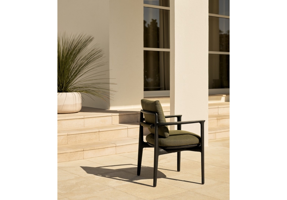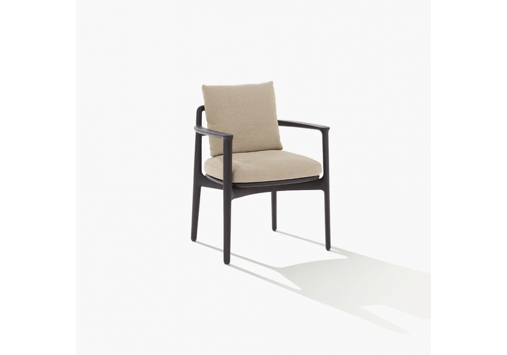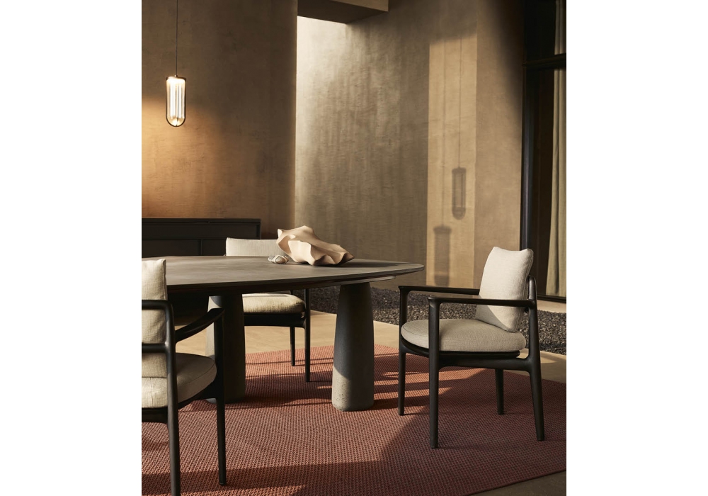 Magnolia firmata da Emmanuel Gallina per Poliform è una sedia con struttura in massello di iroko naturale o iroko tinto nero. Cuscino seduta e schienale in poliestere riciclato PET con inserto in poliuretano. Prerivestimento in fibra di poliestere con cucitura termosaldata. Rivestimento sfoderabile in tessuto.