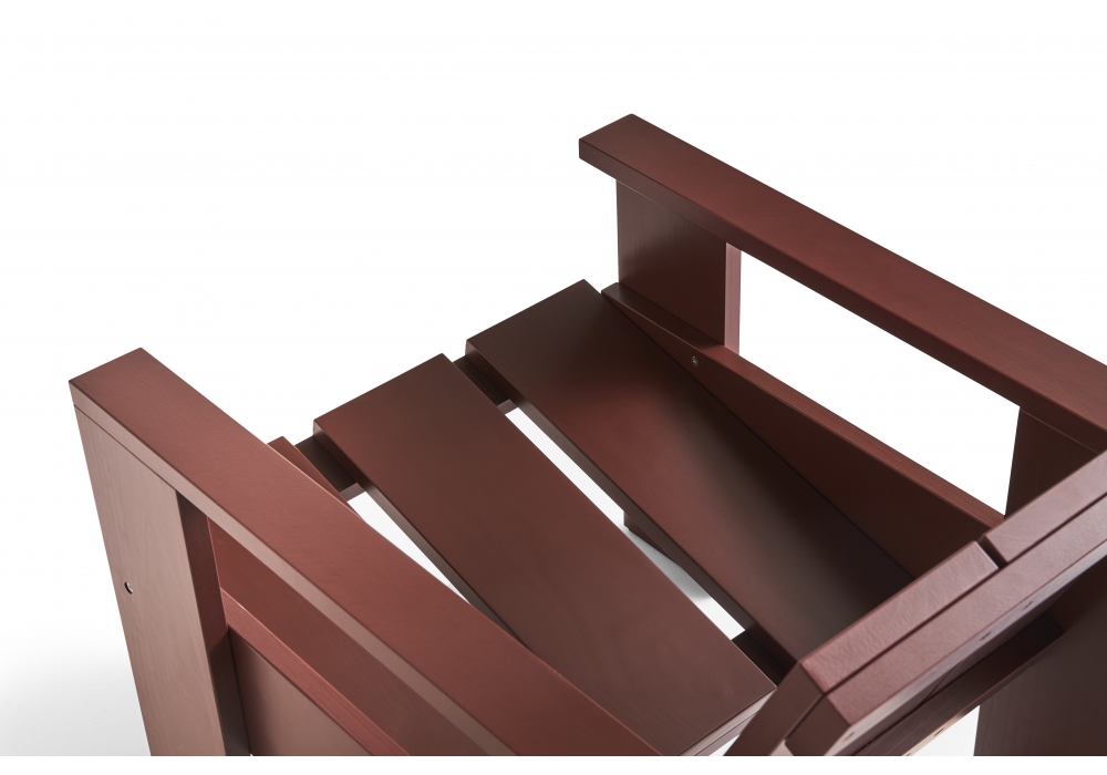 Crate firmata da Gerrit Rietveld per Hay è una sedia Lounge realizzata in massello di pino Radiata laccato all'acqua. Trattato con una lacca per esterni a 3 strati; un primer e due strati di finitura.