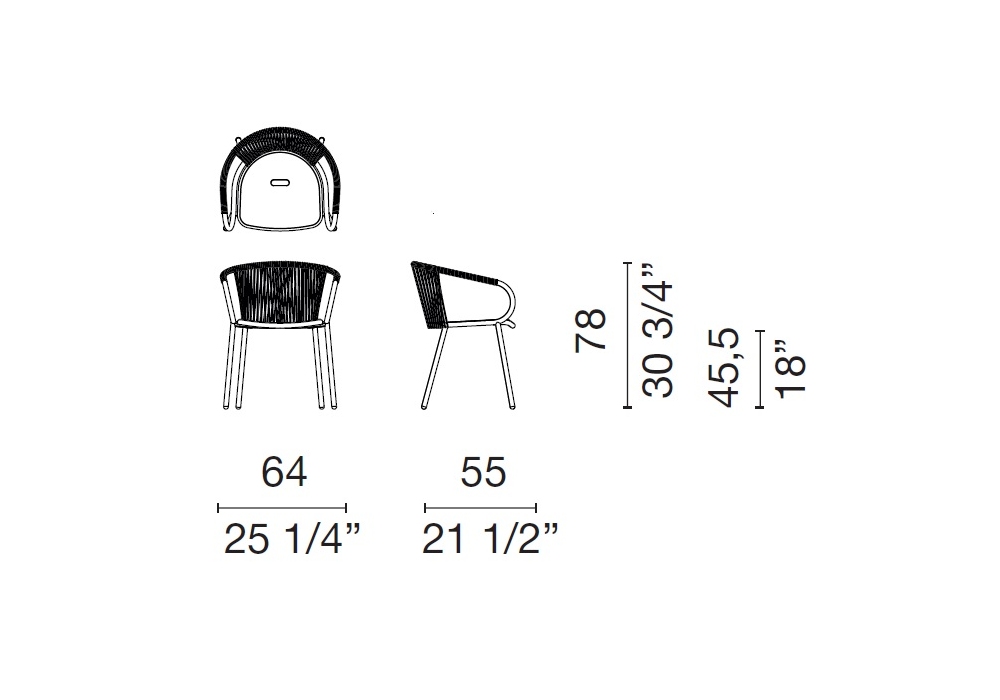 Gilda Lido firmata da Scholten & Baijings per Cappellini è una poltroncina in acciaio inox AISI 304 e alluminio con schienale e braccioli intrecciati a mano. Possibilità di aggiungere un cuscino di seduta amovibile.