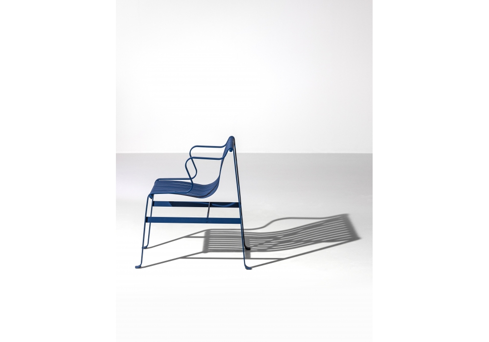 Vendicari Lido firmata da Jangir Maddadi per Cappellini è una sedia con braccioli per esterno realizzata con profili di alluminio piatti e tondini di supporto. Verniciatura a polvere goffrata. Cuscino seduta in ovatta di poliestere con fodera idrorepellente.