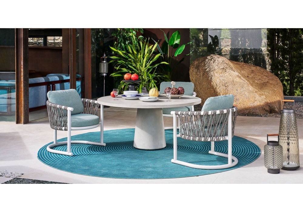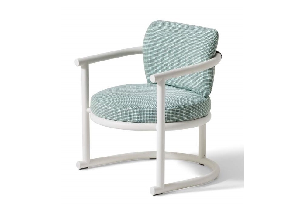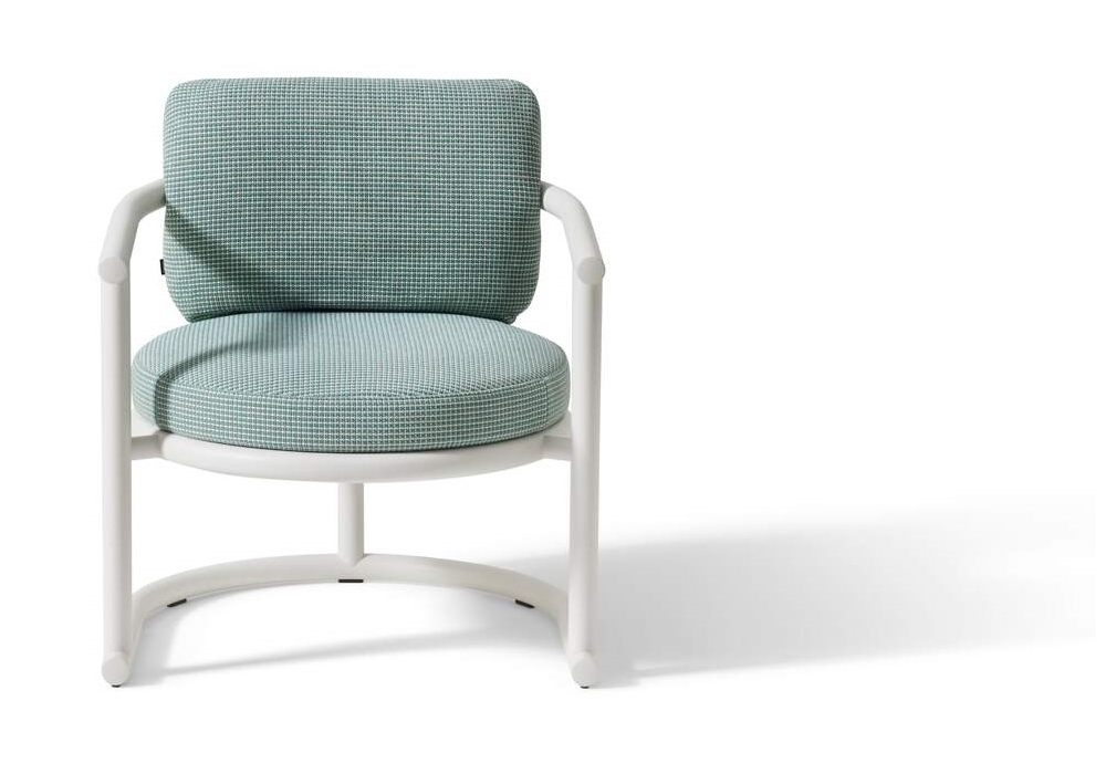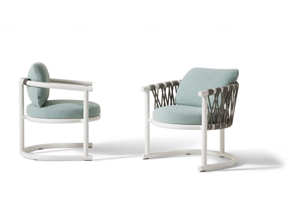 Trampoline 561 firmata da Patricia Urquiola per Cassina è una sedia lounge con struttura in alluminio verniciato a polvere, cuscini in poliuretano espanso con una percentuale di polioli derivanti da origine biologica rivestiti con morbida ovatta in fibra di PET e tela idrorepellente di poliestere. Proposta in due versioni.