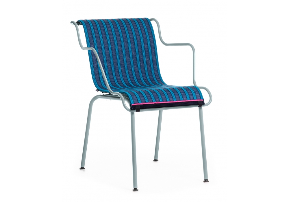 South firmata da Konstantin Grcic per Magis è una sedia con struttura in tubo e tondino di acciaio trattato cataforesi e verniciato poliestere in diverse finiture. Piedini orientabili. Possibilità di aggiunta di stuoie intrecciate.