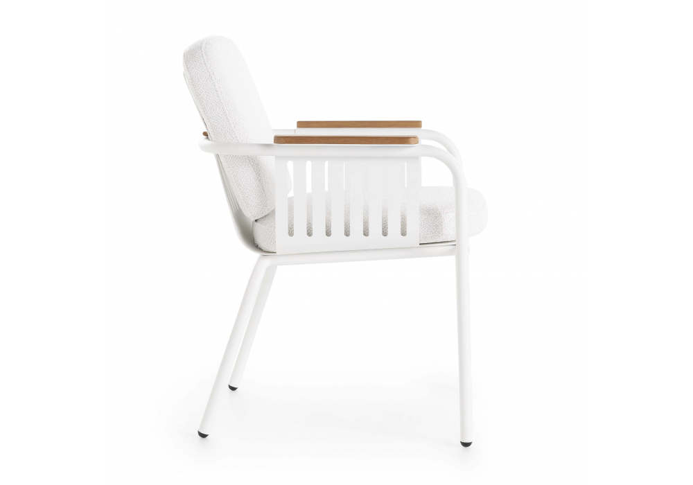 Capa Sedia firmata da Søren Rose per Gandia Blasco è realizzata in alluminio verniciato a polvere. Bracciolo in porcellana o legno di iroko (opzionale). Seduta e schienale in gommapiuma di poliuretano e fibra di poliestere con tessuto idrorepellente. Disponibile in diverse finiture.