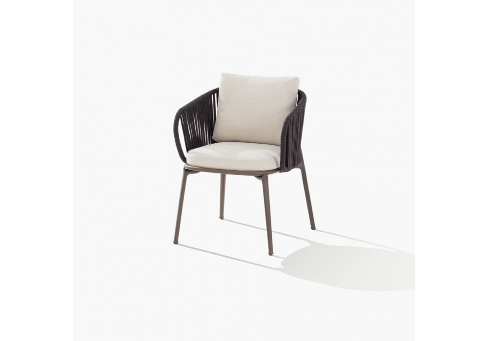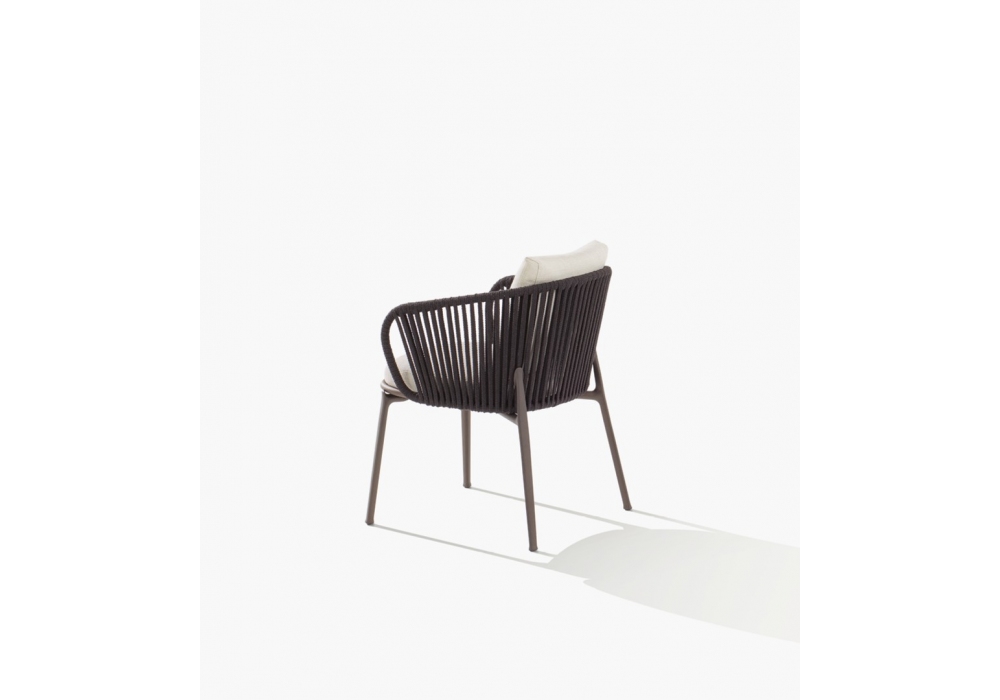 Marina firmata da Emmanuel Gallina per Poliform è una sedia con struttura in acciaio inox, gambe in fusione di alluminio, entrambe verniciate goffrato. Schienale in tubolare di acciaio inox verniciato e rivestito in fettuccia larga. Cuscino seduta e schienale in poliestere riciclato PET con inserto in poliuretano. Prerivestimento in fibra di poliestere. Rivestimento sfoderabile in tessuto.