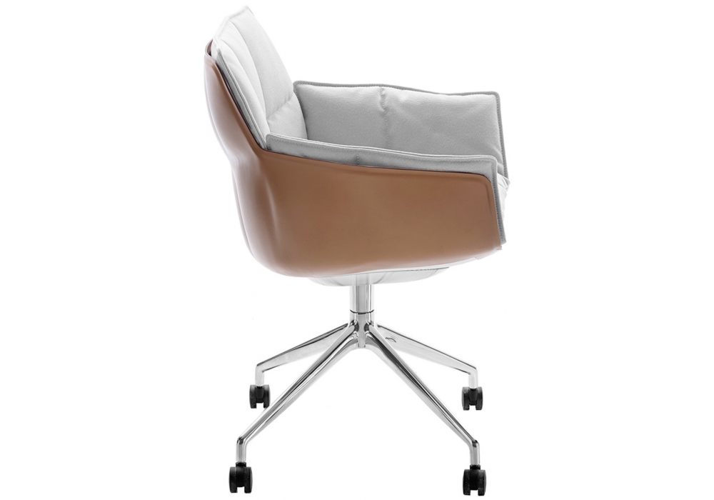 Husk firmata da Patricia Urquiola per B&B Italia è una sedia su ruote con base a 4 razze in fusione d'alluminio con ruote in materiale plastico per superfici morbide (piastrelle, marmo, parquet) o rigide (tappeti, moquette). Scocca in Baydur® in differenti finiture oppure rivestita in cuoio. Rivestimento in tessuto o pelle.