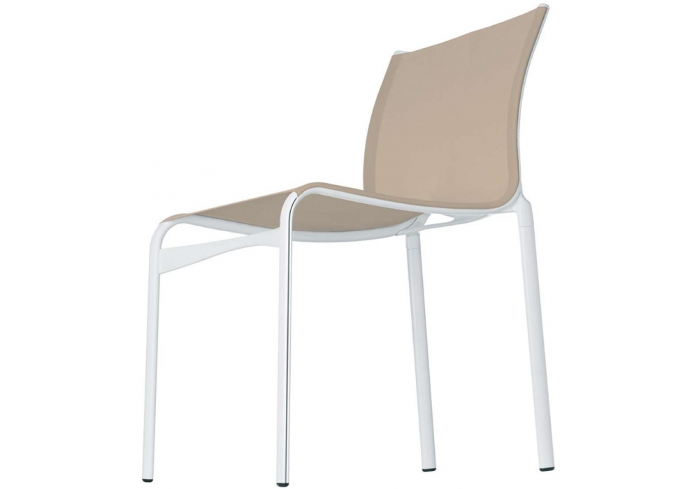 458 Frame 52 firmata da Alberto Meda per Alias è una sedia impilabile in profilo di alluminio estruso, seduta e schienale nelle finiture rete ignifuga o Kvadrat o Pelle Frau.