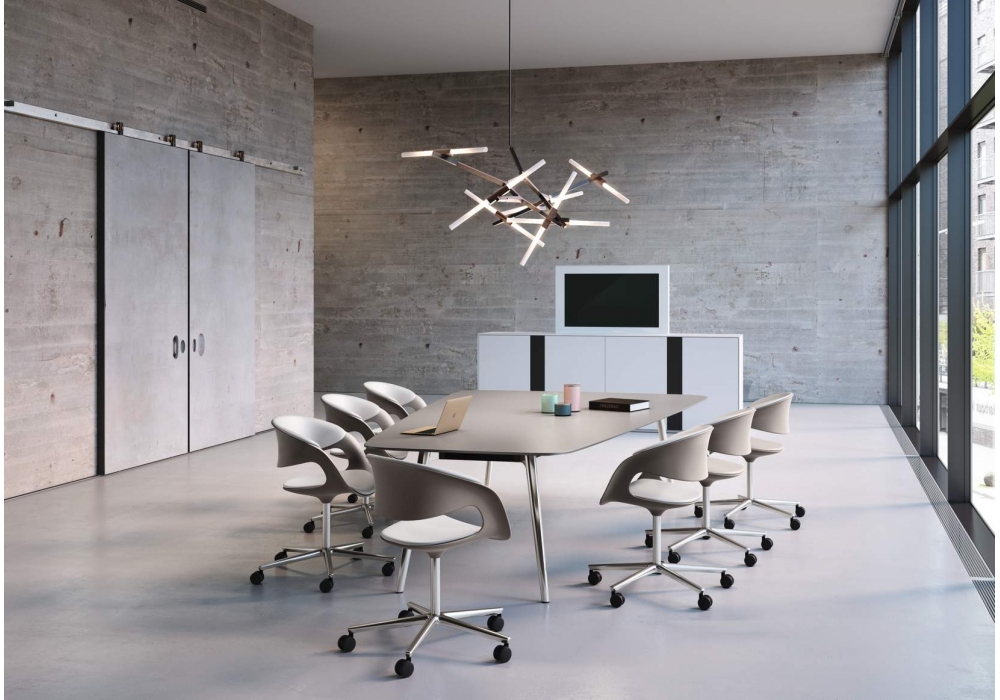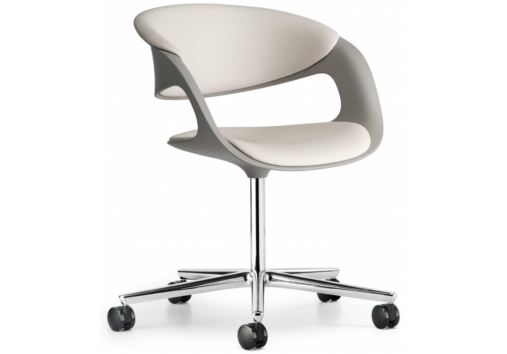 Lox firmata da PearsonLloyd per Walter Knoll è una sedia girevole su ruote con base a 5 razze in alluminio lucido o verniciato. Rivestimento disponibile in tessuto o pelle. Scocca esterna in plastica bianca, nera, greige.