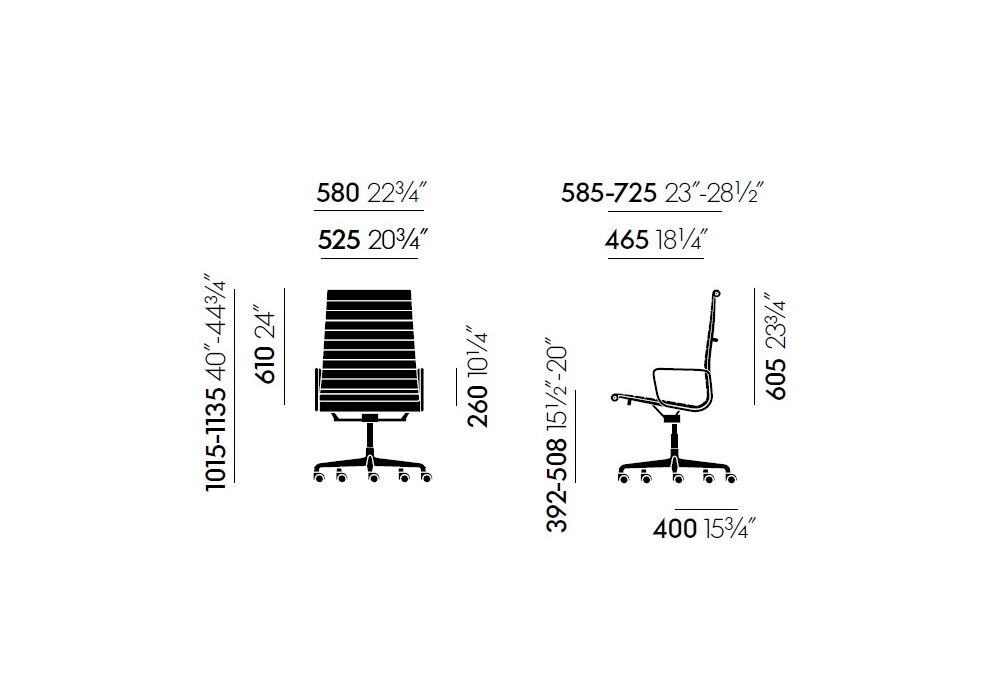 Le sedie dell'Aluminium Group sono i progetti più noti di Charles e Ray Eames. Sono nate nel 1958 e fanno parte dei classici della storia del design del 20° secolo. L'elemento caratteristico è la combinazione intelligente dei materiali per un comfort senza eguali: l'imbottitura è fissata nei profili di alluminio laterali - tensionata liberamente – e quindi all'elemento portante della struttura. Vitra fornisce 30 anni di garanzia su tutte le sedie dell'Aluminium Chair Group (certificato di garanzia).