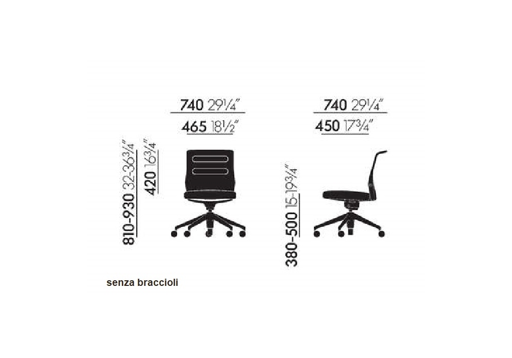 AC 5 Studio disegnata da Antonio Citterio per Vitra è una sedia da atelier, girevole e regolabile in altezza con o senza braccioli. Il sedile e lo schienale sono in tessuto o pelle e basamento a cinque razze in alluminio lucido o in materiale sintetico basik dark. Le misure sono conformi alla norma EN 1335-1. La sedia girevole e regolabile in altezza conforme alla norma EN 16139.