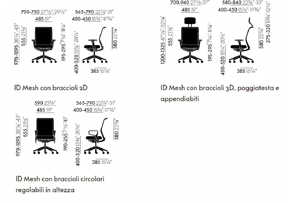 ID Mesh disegnata da Antonio Citterio per Vitra è una sedia girevole da ufficio della collezione ID Chair Concept. La sedia con supporto lombare ha un basamento a cinque razze con rotelle doppie ed è disponibile con braccioli 2D, 3D o in acciaio regolabili in altezza, e con meccanismo flowmotion. Schienale e sedile in silk mesh.
