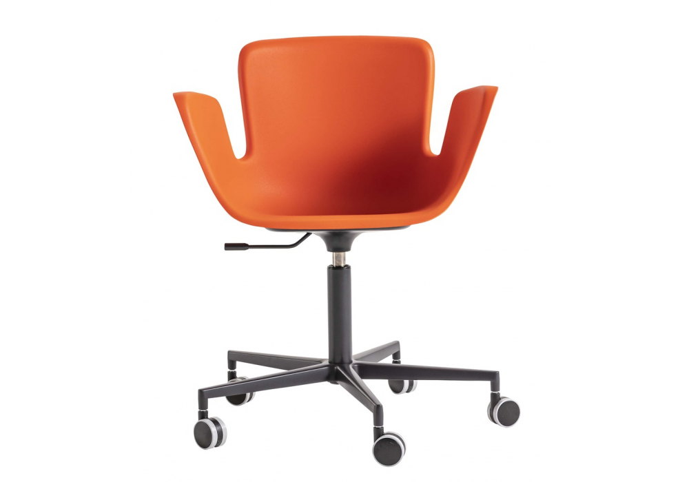 Juli Plastic firmata da Werner Aisslinger per Cappellini è una poltroncina girevole con altezza variabile realizzata con base 5 razze con piedini o ruote e braccioli in plastica. Struttura e scocca disponibili in diverse finiture.