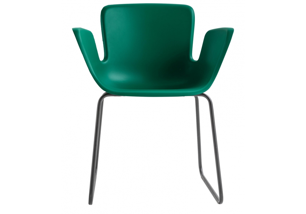 Juli Plastic firmata da Werner Aisslinger per Cappellini è una poltroncina con base a slitta e braccioli in plastica colorata. Disponibile in diverse finiture.