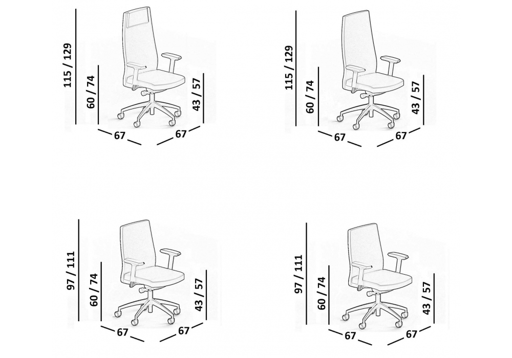 inserto perimetrale in acciaio ad alta resistenza per lo schienale ed in legno multistrato per il sedile. Braccioli 3D a scelta cromati o neri con pad in poliuretano morbido. Regolabile in altezza mediante lama up-down. E' possibile aggiungere il poggiatesta integrato nella versione con altezza 115/129 cm. Disponibile in diverse finiture e dimensioni.