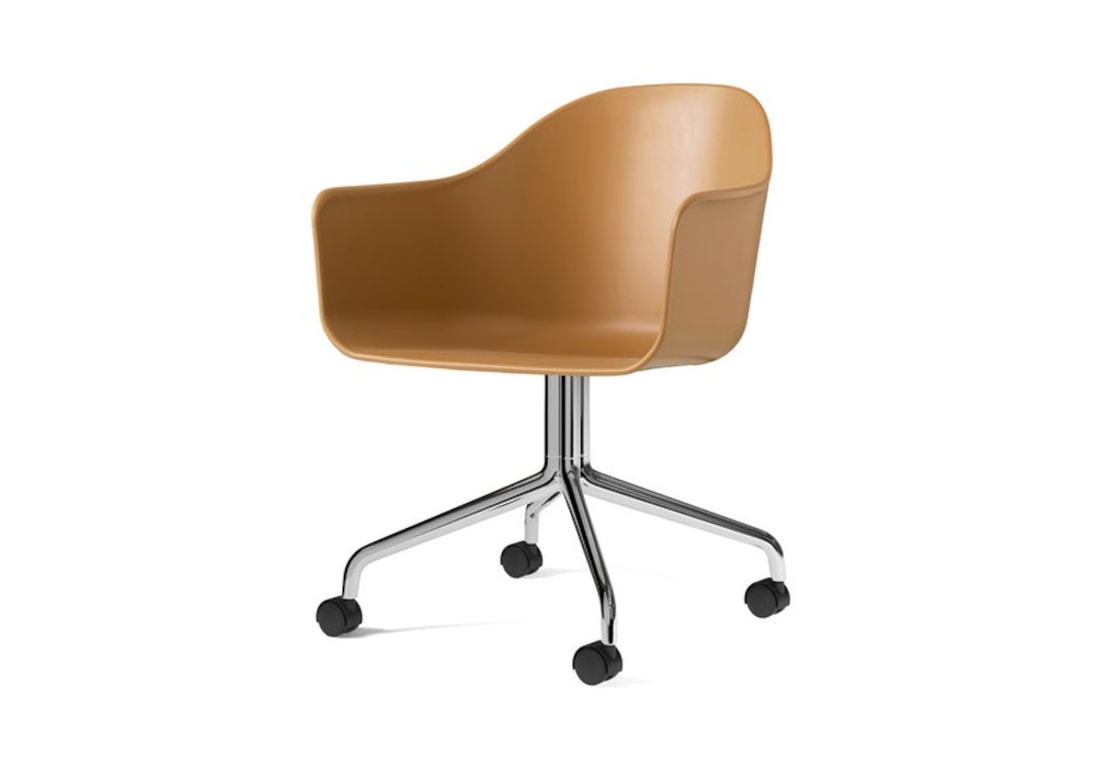 Harbour Casters Plastic firmata da Norm Architects per Audo Copenhagen è una sedia con rotelle caratterizzata da una scocca in polipropilene con fibra di vetro e base in alluminio. Disponibile in diverse finiture.