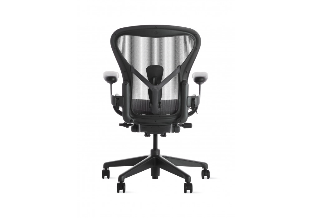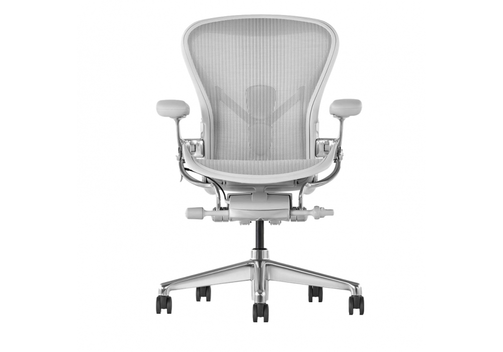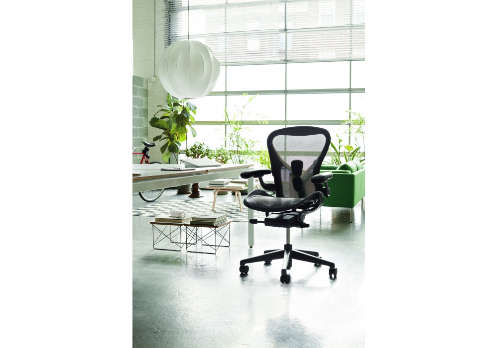 Aeron firmata da Bill Stumpf e Don Chadwick per Herman Miller è una sedia da ufficio. Disponibile in tre misure per adattarsi a tutti gli utenti. Composta per oltre il 50% di materiale riciclato e ora con plastica destinata a finire negli oceani. Disponibile in differenti finiture.