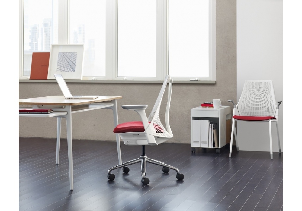 Sayl firmata da Yves Béhar per Herman Miller è una sedia da ufficio, ha un design eco della seduta e utilizza una minore quantità di materiale in modi innovativi per garantire un sostegno ergonomico a utenti fino a 159 kg di peso. Disponibile in differenti finiture.