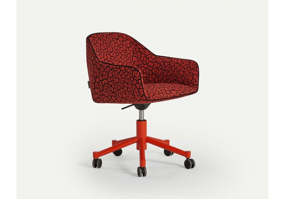 Nido firmata da Rafa García per Sancal è una sedia girevole con base in metallo laccato, seduta e schienale imbottiti rivestiti in tessuto o pelle.