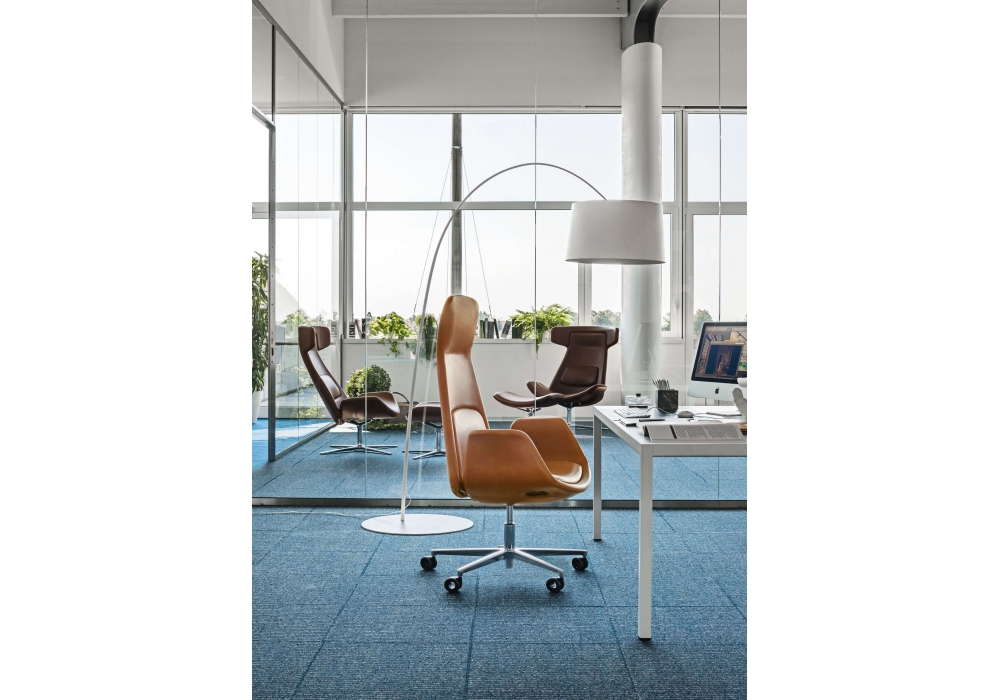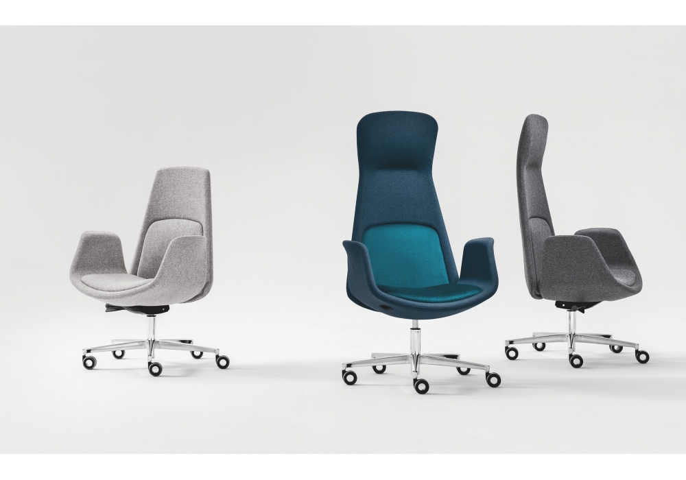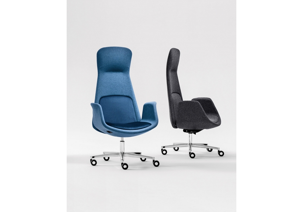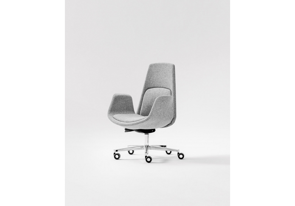 Nordic firmata da Giovanni Ingignoli per Milani è una sedia realizzata con sedile e schienale in schiumato ignifugo, meccanismo sincronizzato autopesante e base in alluminio. Ruote standard Ø 65 mm autofrenanti nere. Disponibile in diverse finiture e modelli.