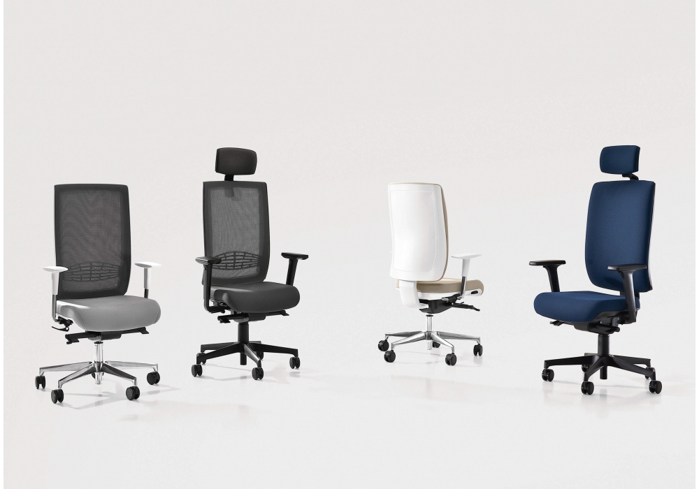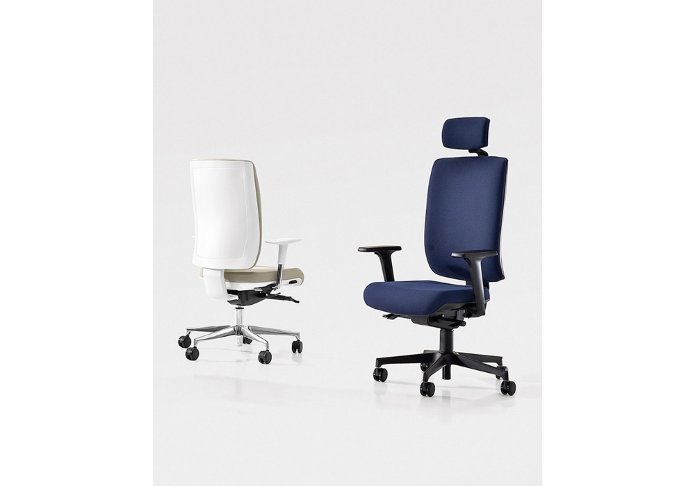Lex firmata da R&D Milani è una sedia realizzata in molteplici varianti e in un’ampia gamma di combinazioni: con scocca e braccioli in plastica bianca o nera, schienale imbottito o in rete e poggiatesta regolabile rivestito. Le basi possono essere in alluminio o in nylon nero.