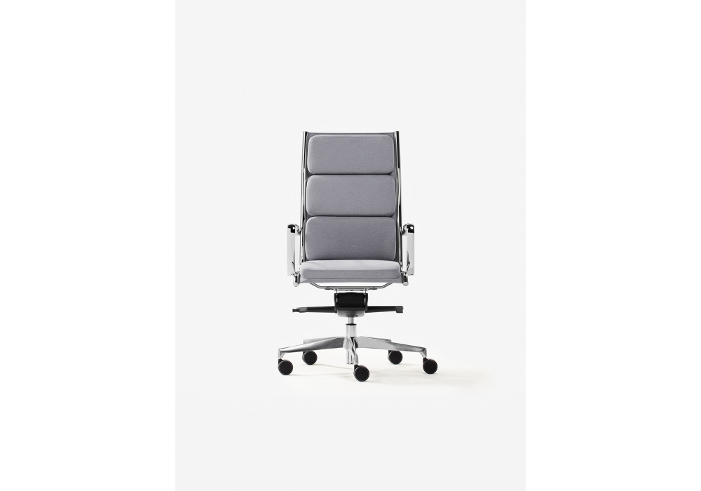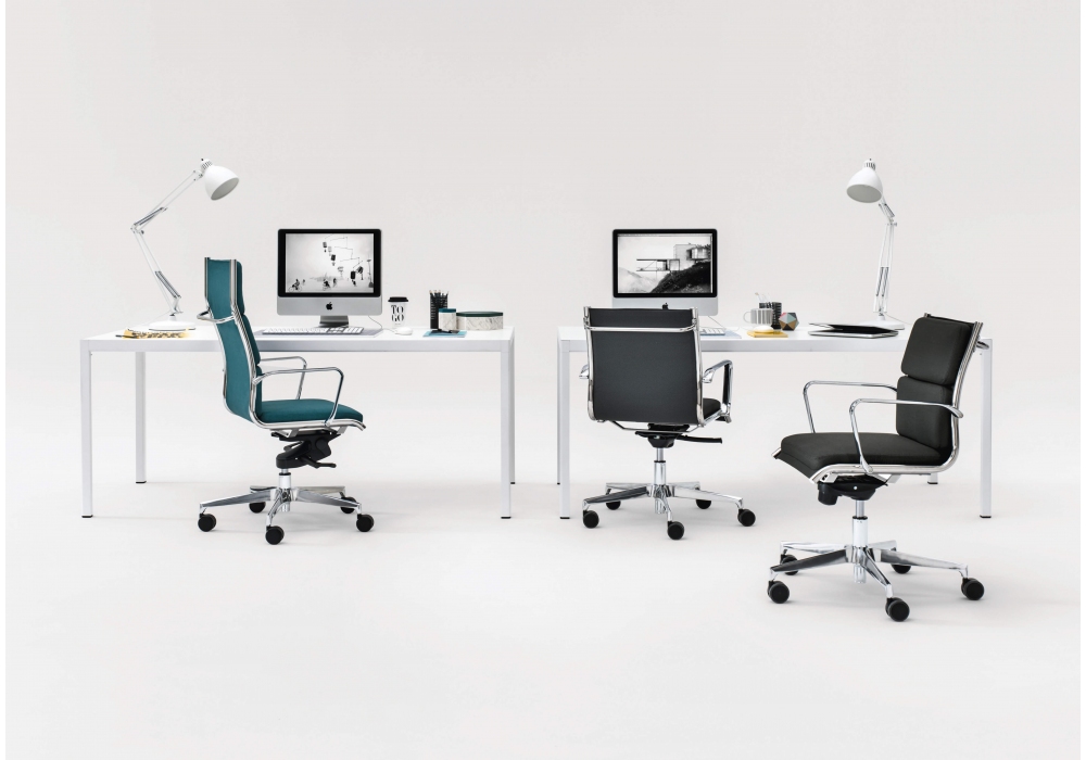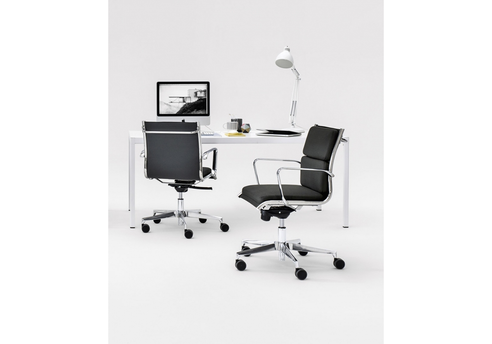 Sky Soft firmata da R&D Milani è una sedia realizzata con sedile e schienale in resina espansa ignifuga, struttura in metallo cromato senza viti laterali. Base 5 razze in alluminio lucido o nero. Ruote standard Ø 65 mm autofrenanti nere. Disponibile in diverse finiture e modelli.