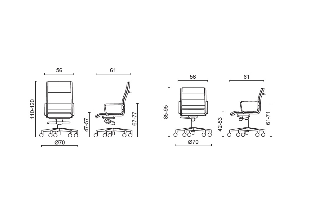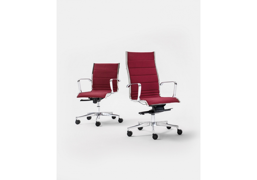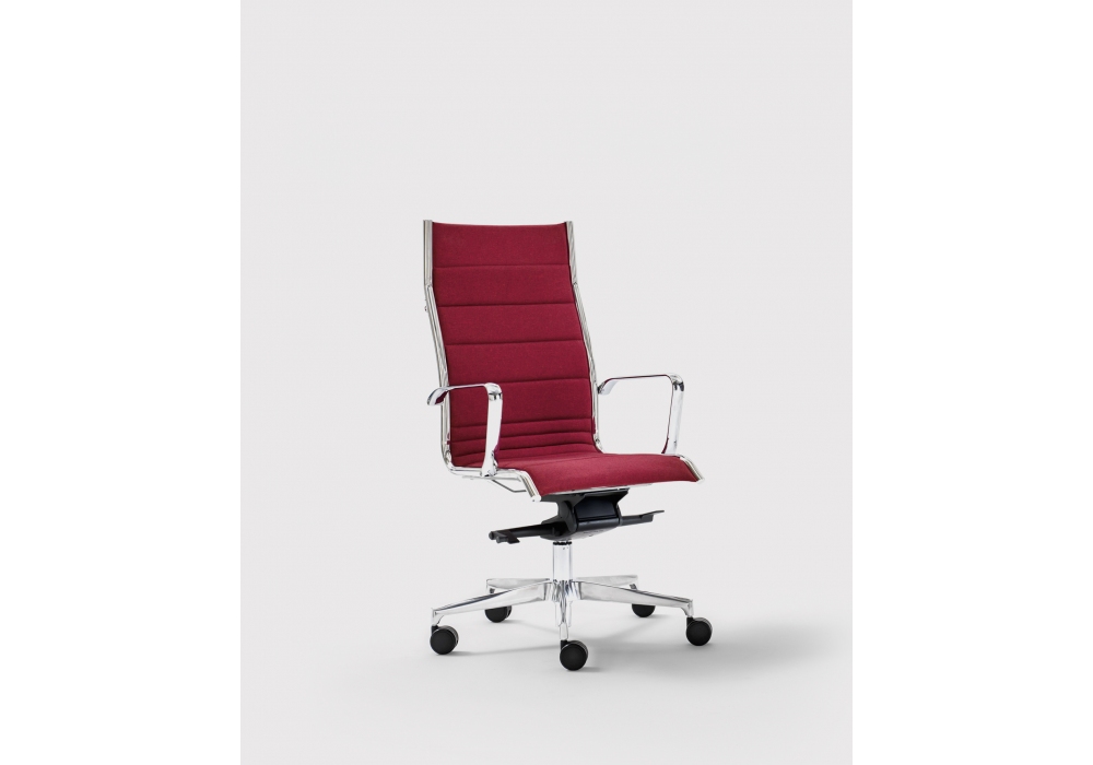 Sky Ten firmata da R&D Milani è una sedia realizzata con sedile e schienale in resina espansa ignifuga, struttura in metallo cromato senza viti laterali. Base 5 razze in alluminio lucido o nero. Ruote standard Ø 65 mm autofrenanti nere. Disponibile in diverse finiture e modelli.