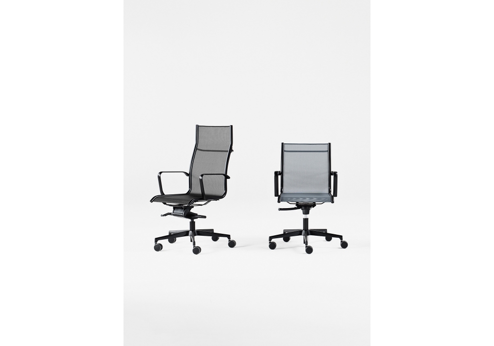 Sky Mesh firmata da R&D Milani è una sedia realizzata con sedile e schienale in rete RT, struttura in metallo cromato senza viti laterali. Base 5 razze in alluminio lucido o nero. Ruote standard Ø 65 mm autofrenanti nere. Disponibile in diverse finiture e modelli.
