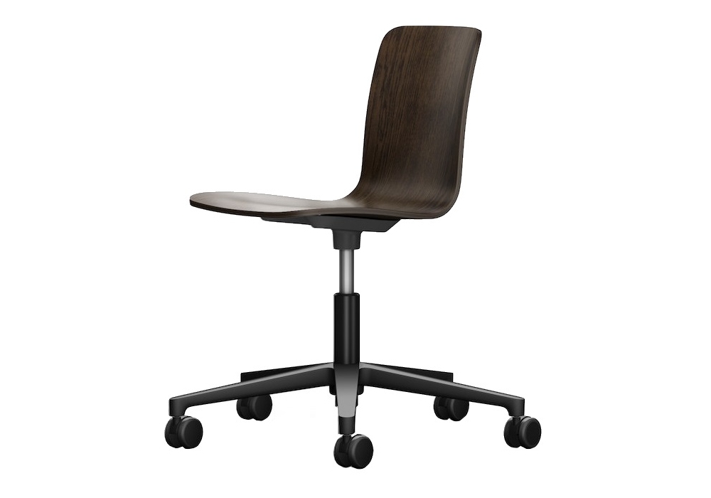 HAL Ply Studio: Scocca sedia in legno compensato. Basamento a cinque razze in alluminio verniciato a polvere in basic dark. Meccanismo girevole con sospensioni del sedile ad assorbimento degli urti, regolabile in altezza.