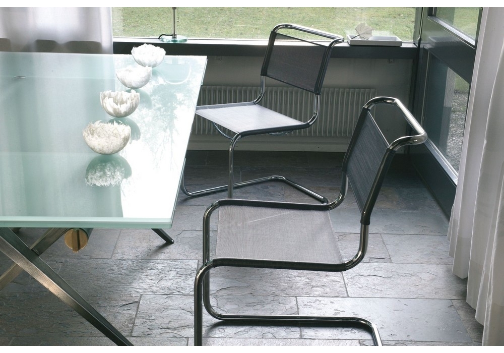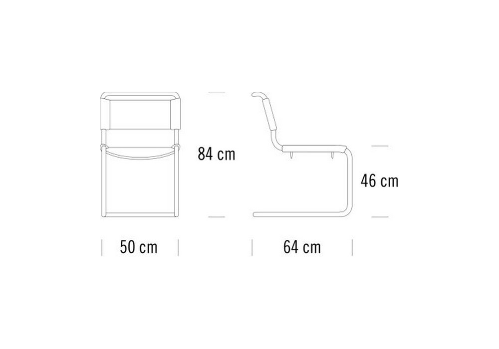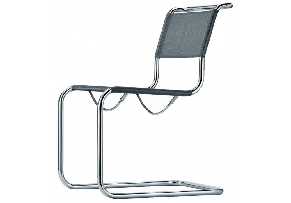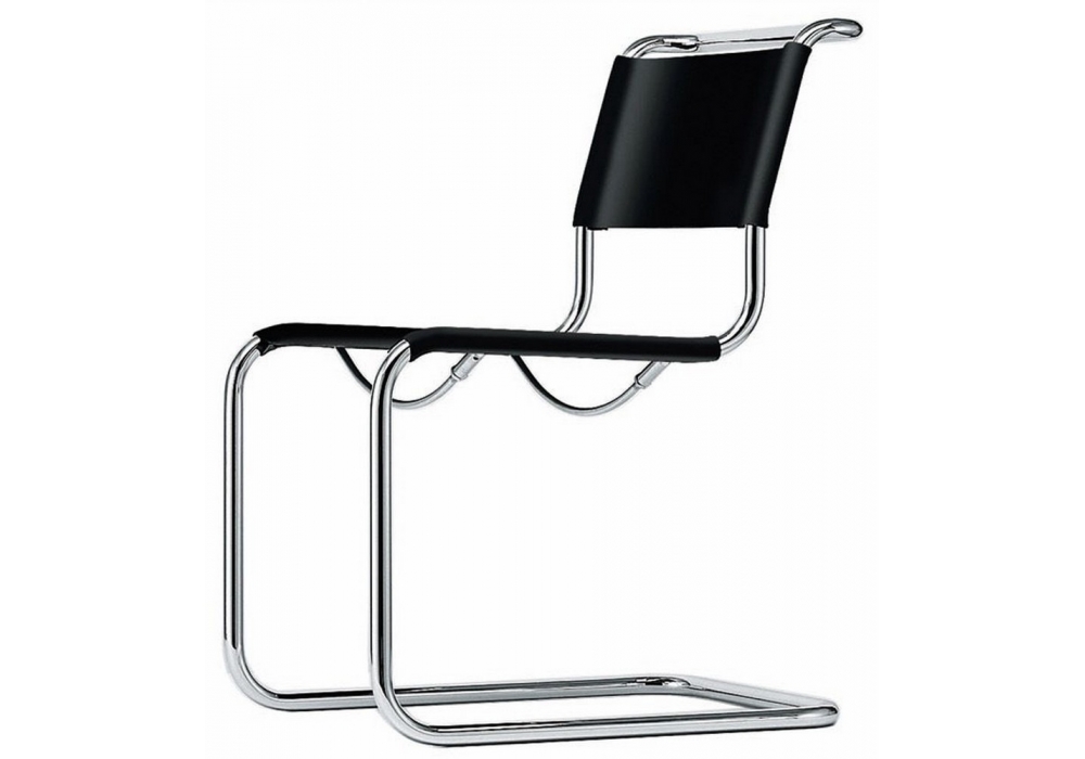 S 33 firmata da Mart Stam (Artistic copyright) per Thonet è una sedia a slitta in tubolare d'acciaio cromato. Seduta e schienale in cuoio o a rete di materiale sintetico, disponibili in diverse finiture.