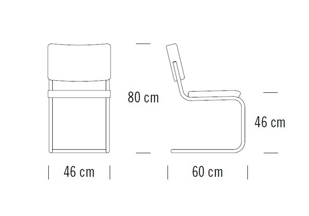 S 32 PV firmata da Marcel Breuer, Artistic copyright Mart Stam per Thonet è una sedia a slitta con telaio in tubolare d'acciaio cromato. Seduta e schienale imbottiti, rivestimento disponibile in diverse finiture con cordoncino nelle varie versioni.