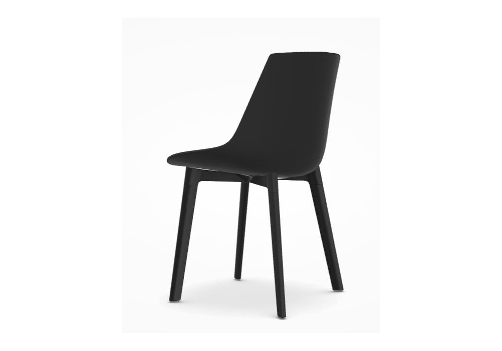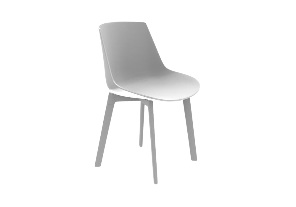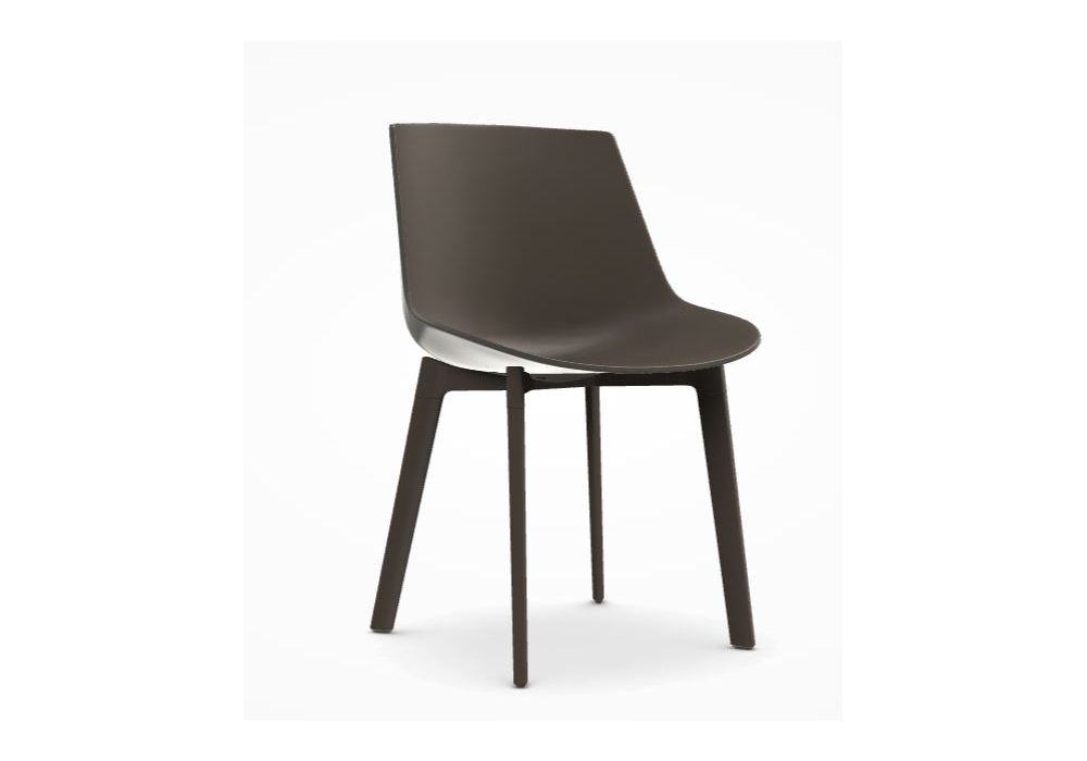 Flow Chair firmata da Jean Marie Massaud per MDF Italia è una sedia con 4 gambe cross, struttura in pressofusione di alluminio e gambe in legno massello laccato in diversi colori. La scocca è disponibile in due versioni: pigmentata in massa con parte esterna lucida e interna microgoffrata; verniciata opaco in diverse finiture.