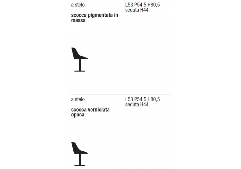 Flow Chair firmata da Jean Marie Massaud per MDF Italia è una sedia con base a stelo realizzato in alluminio verniciato a polveri epossidiche, in diversi colori. E' girevole a 360°. La scocca è disponibile in due versioni: pigmentata in massa con parte esterna lucida e interna microgoffrata; verniciata opaco in diverse finiture.