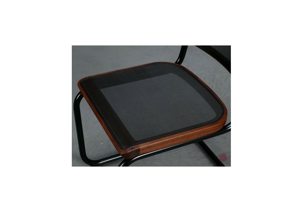 S 32 N firmata da Marcel Breuer, Artistic copyright Mart Stam per Thonet è una sedia a slitta con tubolare in acciaio cromato. Seduta e schienale in tessuto a rete. Bordo dello schienale e della seduta disponibile in diverse finiture.