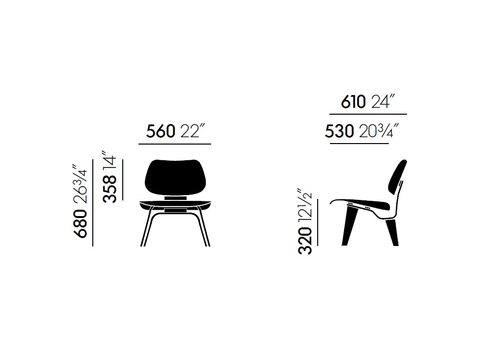 Vitra Plywood Group LCW sedia in pelle: Per lunghi anni la sperimentazione Ray e Charles Eames è proceduta verso la ricerca di nuovi procedimenti per adattare al meglio il multistrato modellato tridimensionale alle forme del corpo umano. Il risultato di questa sperimentazione è Plywood Group, con seduta, schienale e gambe in multistrato modellato.