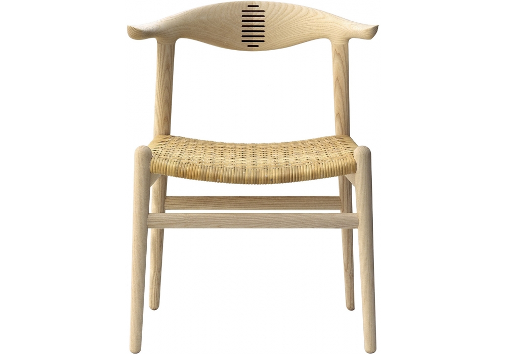 PP505 Cow Horn Chair progettata da Wegner per PP Møbler è una sedia in legno. Disponibile in ciliegio oleato, legno trattato al sapone, legno laccato. PP505 è disponibile sia con seduta impagliata o imbottita. A differenza di molte altre sedie di Wegner che viene fornita con un sedile imbottito, questa sedia è rivestita direttamente sulle guide del sedile.