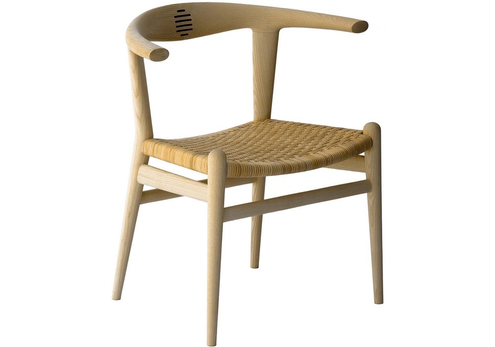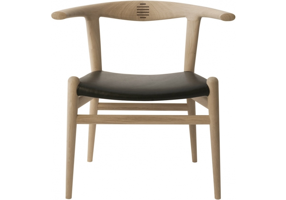 PP518 Bull Chair disegnata da Wegner per PP Møbler è disponibile sia con sedile impagliato che imbottito. La seduta imbottita è rivestita direttamente sulle guide del sedile. I braccioli sono sempre tagliati dallo stesso pezzo di legno. Il dettaglio presente nella parte posteriore è realizzato in legno di palissandro.