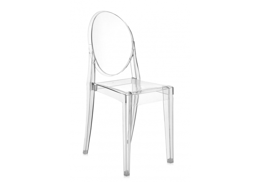Victoria Ghost firmata da Philippe Starck per Kartell è una sedia realizzata in policarbonato 2.0 da materia prima rinnovabile trasparente o colorato in massa.