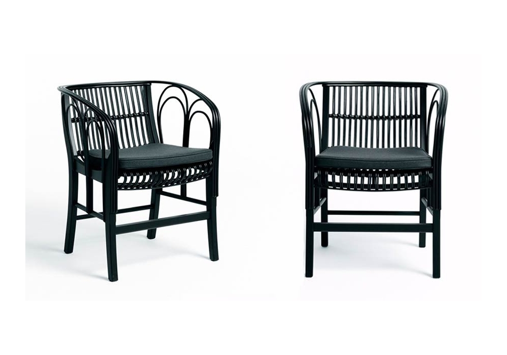 Uragano firmata da Vico Magistretti per DePadova è una sedia con struttura in massello di frassino tinto all’anilina sbiancato o color nero. Cuscino opzionale.