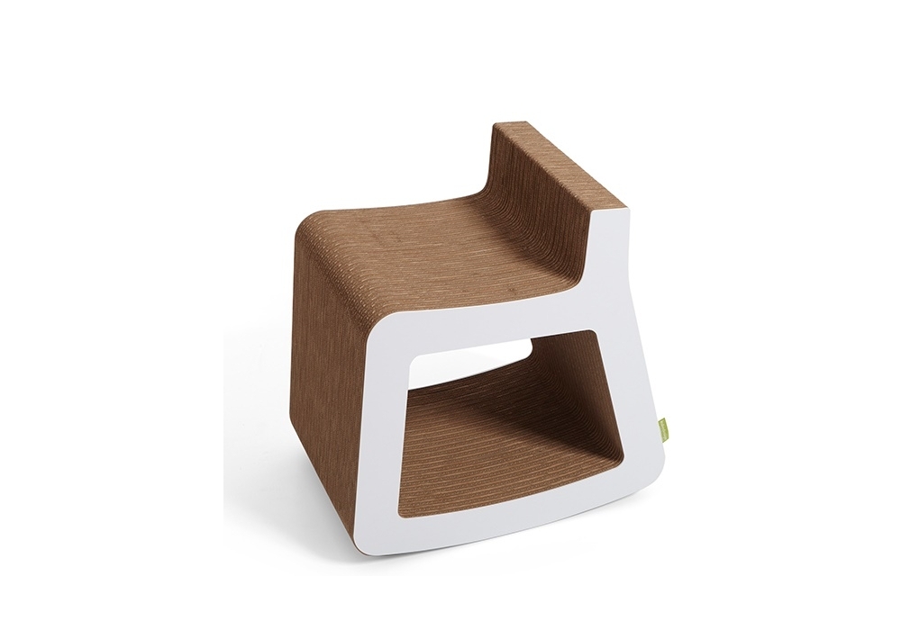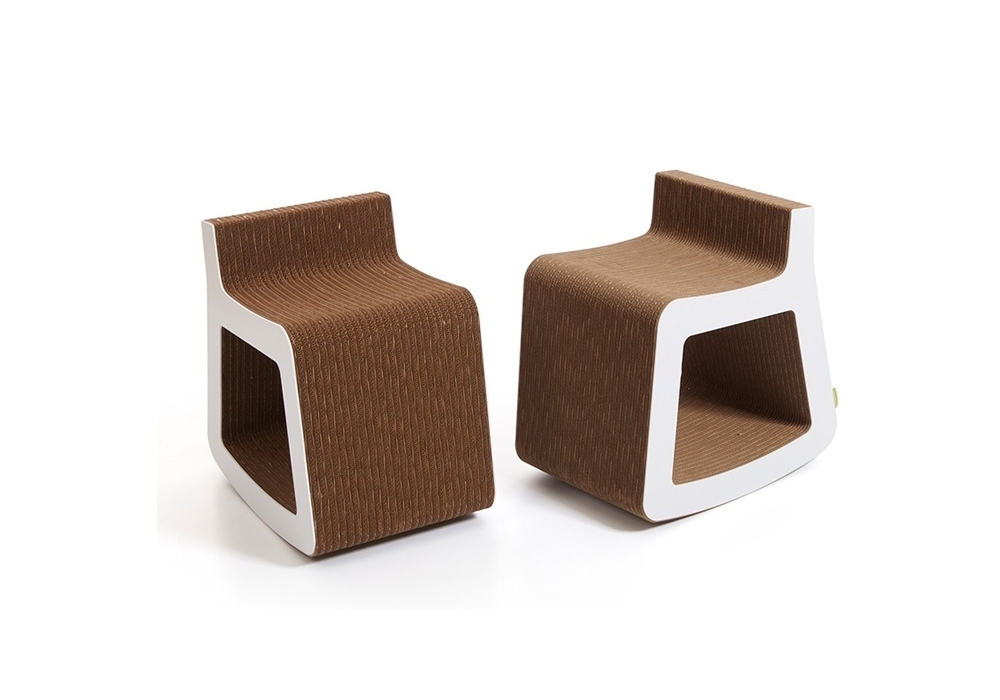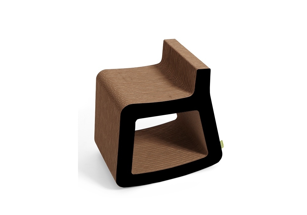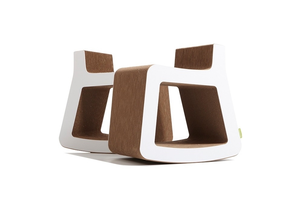 Dondolo di Kubedesign è una sedia a dondolo in cartone tridimensionale rifinita in materiale rigido antiurto nei colori bianco, nero e rosso.