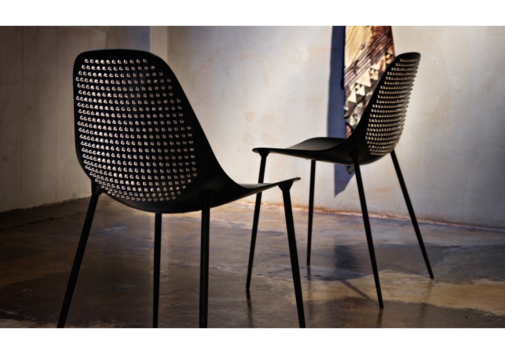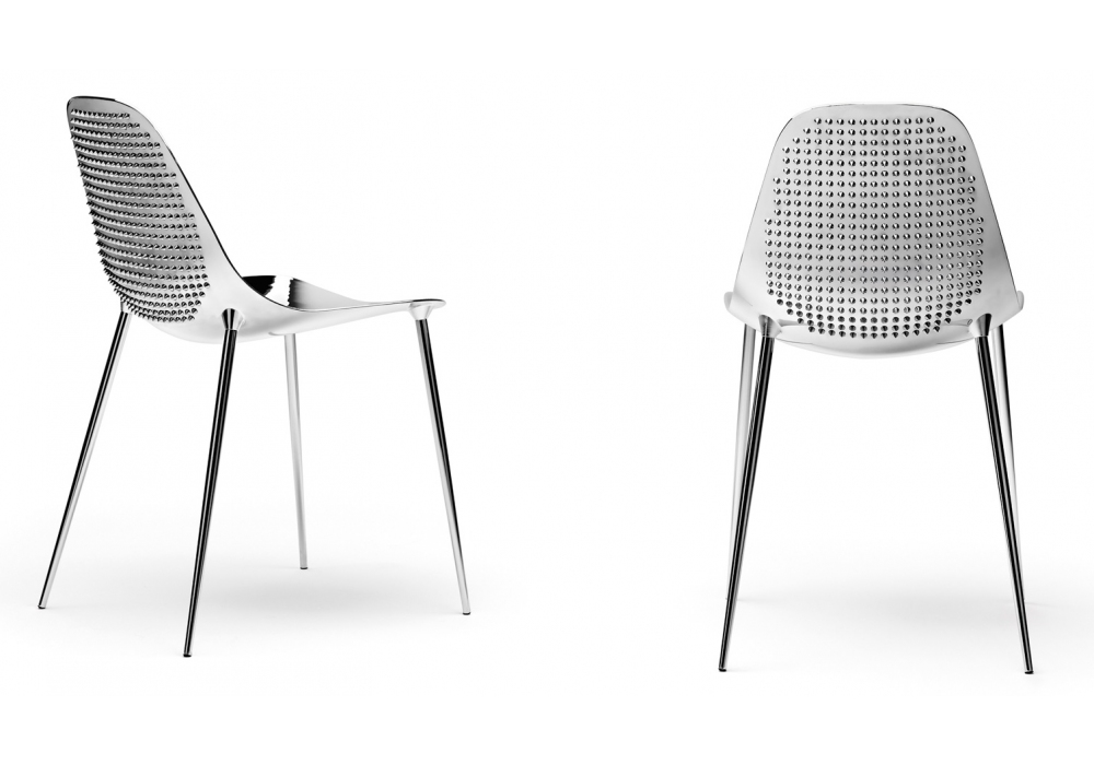 Mammamia Punk firmata da Lapo Ciatti per Opinion Ciatti è una sedia realizzata con scocca in pressofusione d’alluminio e struttura in acciaio verniciato, non impilabile. Schienale con 398 borchie applicate a mano. Disponibile in diverse finiture. Piedini in plastica e feltro opzionali.