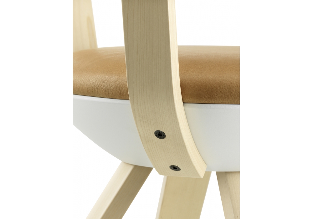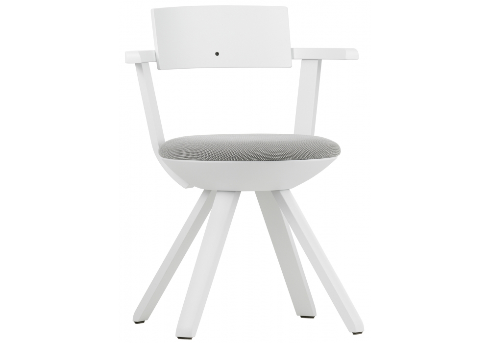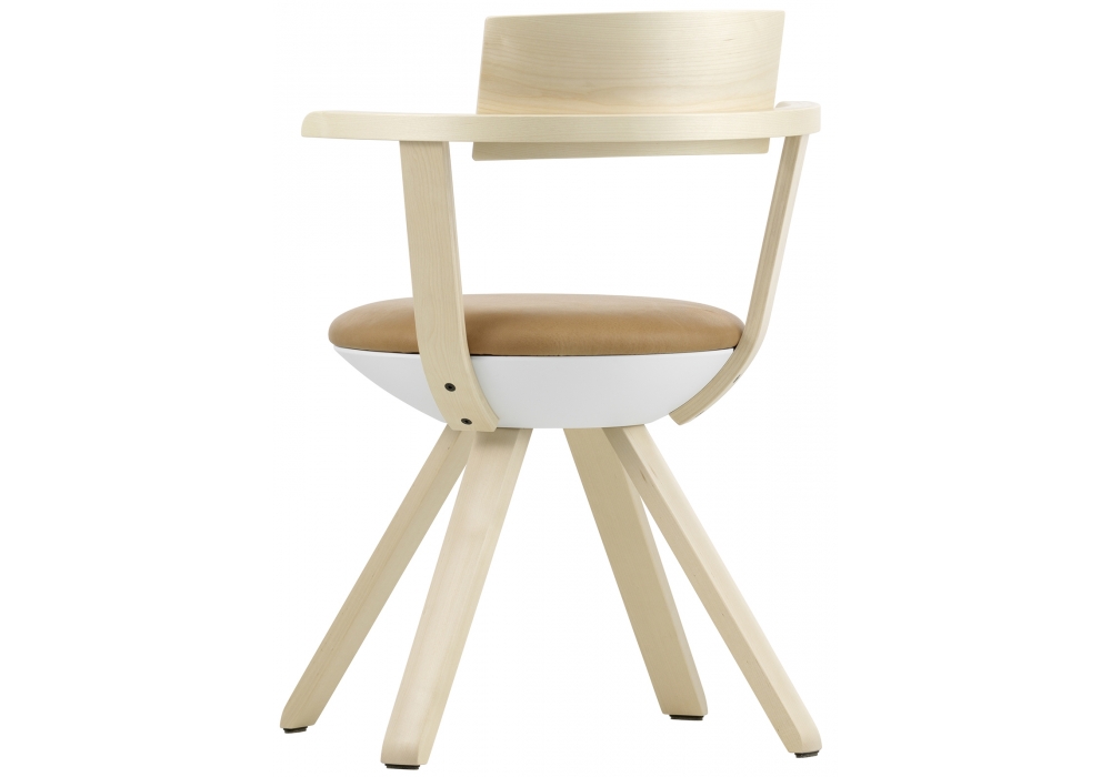 KG002 Rival Chair, firmata da Konstantin Grcic per Artek, è composta da gambe in betulla massello, schienale in lamellare di betulla laccata, seduta in plastica e imbottitura di pelle o tessuto. La seduta imbottita è girevole.