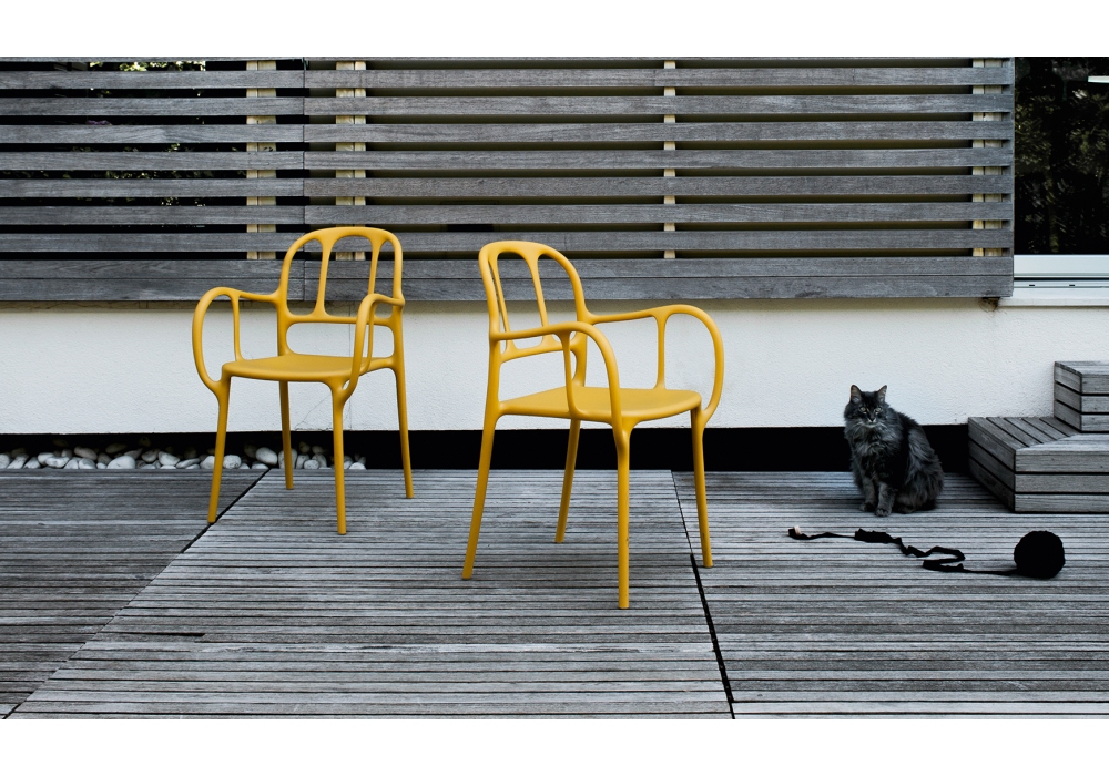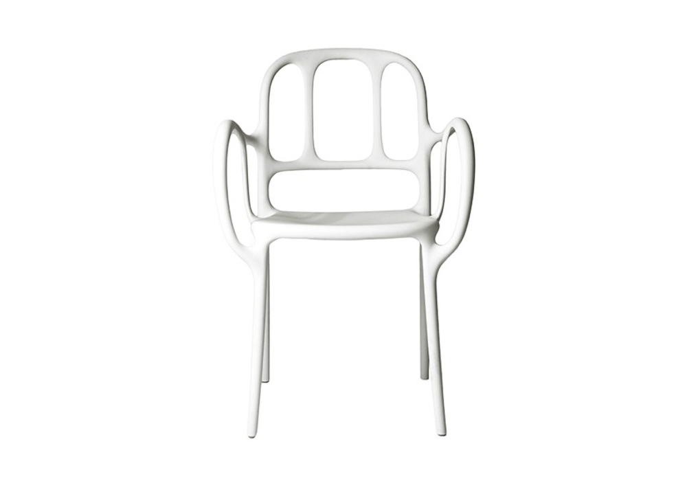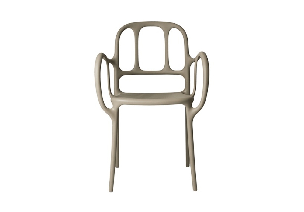 Milà firmata da Jaime Hayón per Magis è una sedia con braccioli impilabile, realizzata in polipropilene caricato di fibra di vetro. Finitura effetto seta. Disponibile in diversi colori.
